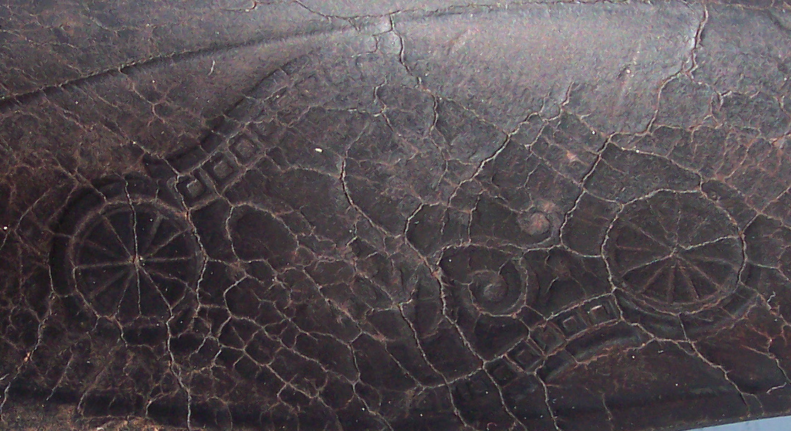 What struck me at once was the stamp on the side, with its ‘Greek key’ border and flanking pair of spoked wheels, which apart from the insert where the name appears, is almost identical to mine: