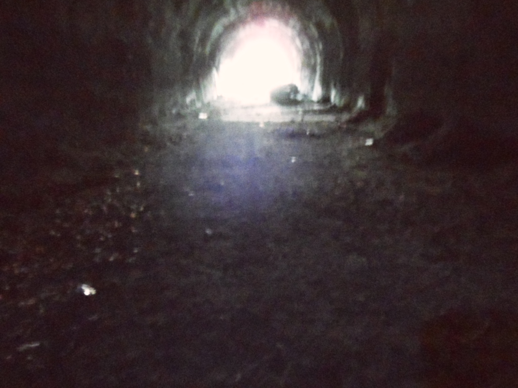 The Pottiehill tunnel is a fine feat of engineering and the interior for the most part is dry and entirely sound; the ground is a little uneven, but is not difficult to cycle, though I was glad of my powerful lights, as the tunnel has a considerable bend so that you cannot see the far end and the near one at the same time.