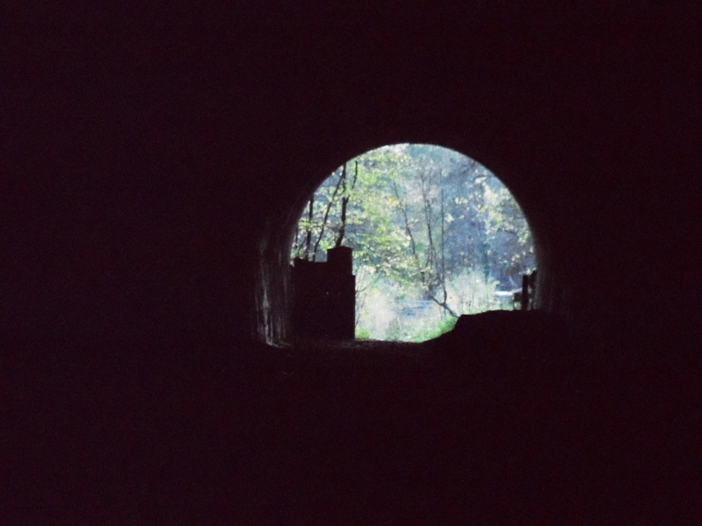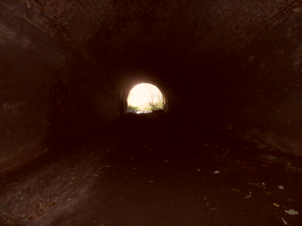 The South tunnel is straight enough to see both ends from the middle, though you need to stand to one side, so it clearly has a bend in it. I went back through without using the torch, just for the fun of it. It is surprising, once your eyes get used to the dark, just how much you can see, and one thing you notice is how any surface that faces the tunnel mouth behind you catches the light. In honour of my brother Brendan, who instituted a tradition of tunnel-singing on the canals, I tested the acoustic with a verse of the Tantum Ergo. Fortunately there was no-one else to hear.