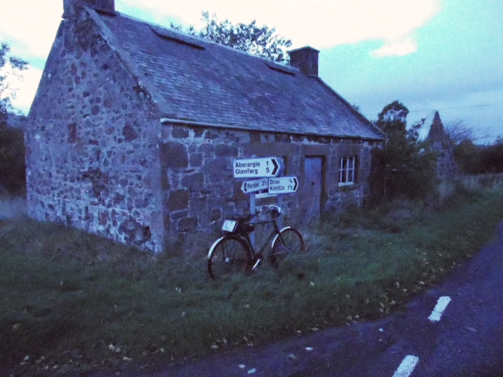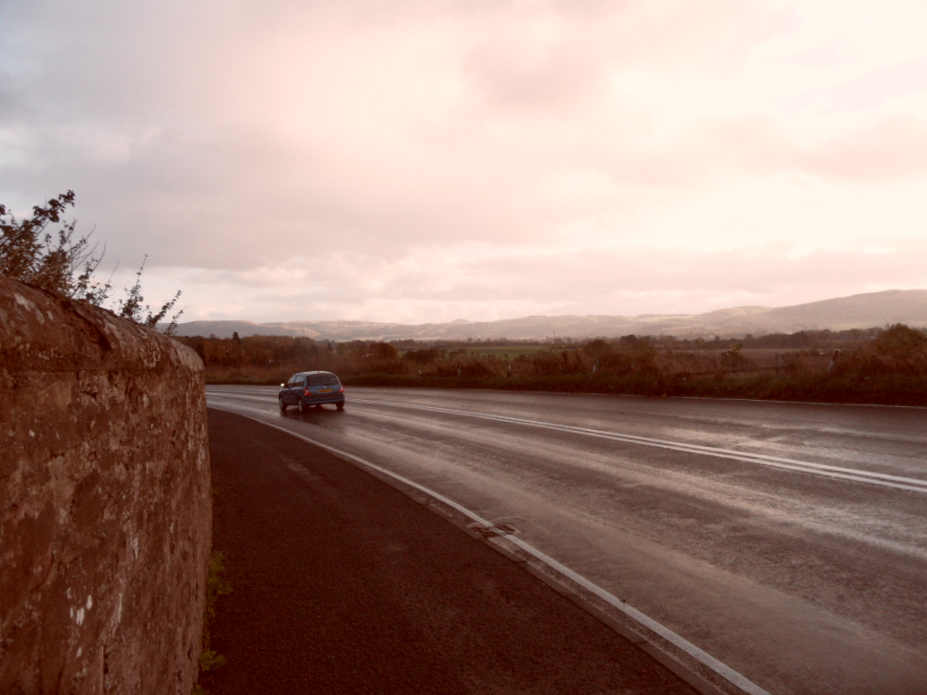 I set off over the hill by the Edinburgh Road and down into Strathearn. There had been a heavy shower of rain while I was working on the bike, but the weather was clearing steadily, with sunlight on the distant hills.