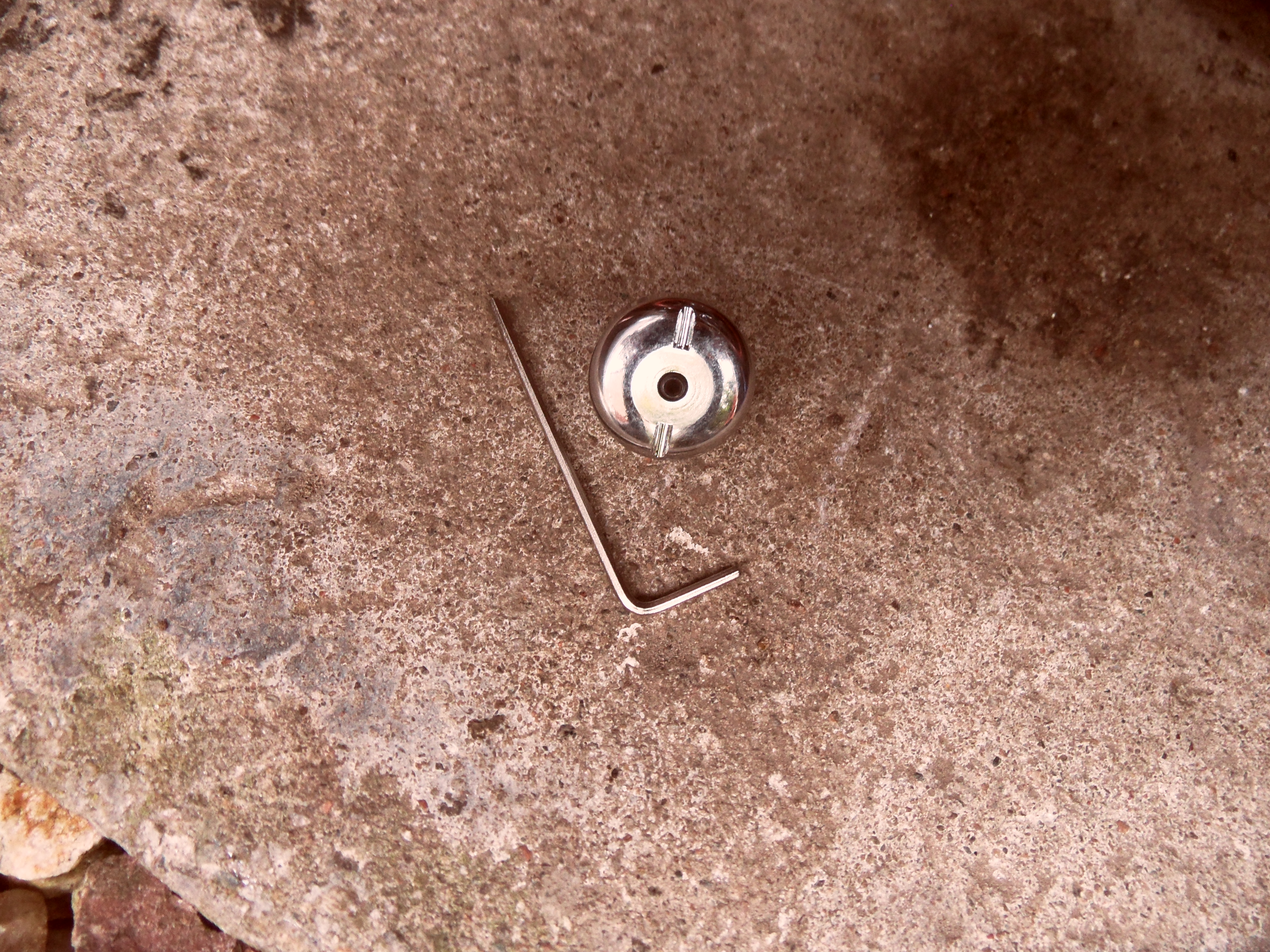 The button comes with its own delicate Allen key, used to secure the tiny grub screw in the centre against the end of the changing rod, where it acts (as far as I can see) rather like a lock-nut.