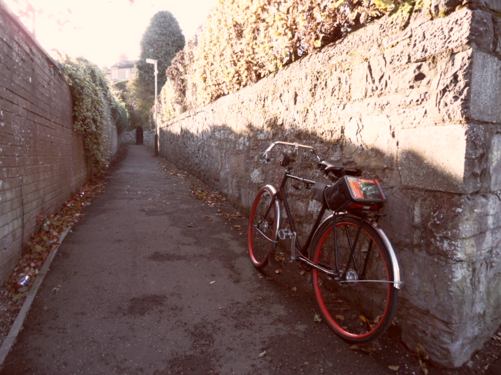 Cycling is often, for me, a deliberate antidote to the melancholic lethargy to which I am prone, so it is not unusual to have to chide myself into it: ‘you’ll feel better for having done it; you know you’ll enjoy it once you’re out there.’ It generally works, but not always (and I was interested to find Lovely Bicycle blogging on much the same point, here – could it be the time of year?). The day was bright enough, with flaring Autumn colours