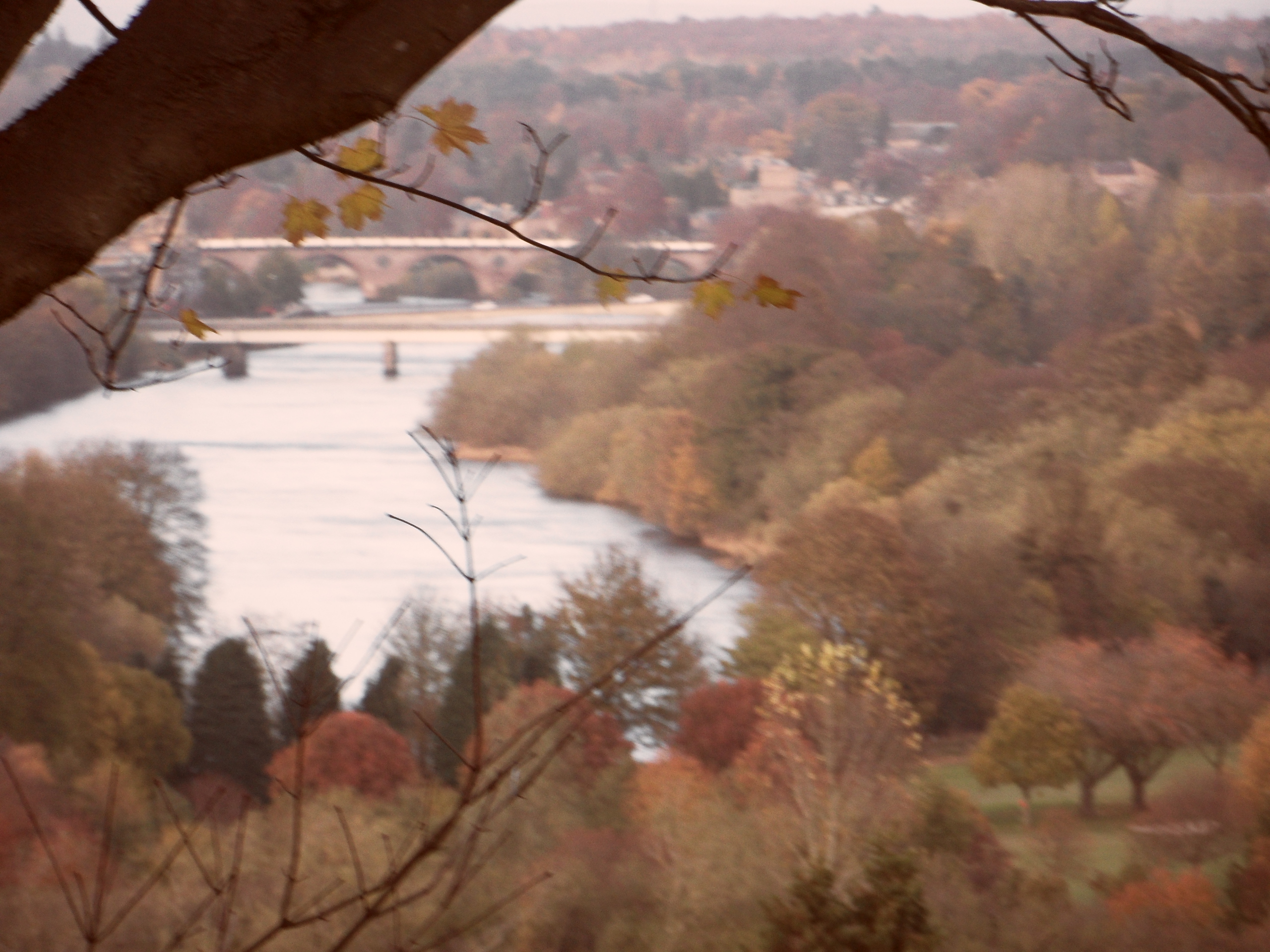 I rode up over the hill and down into Strathearn, pausing to admire the Earn on either side of the eponymous bridge: