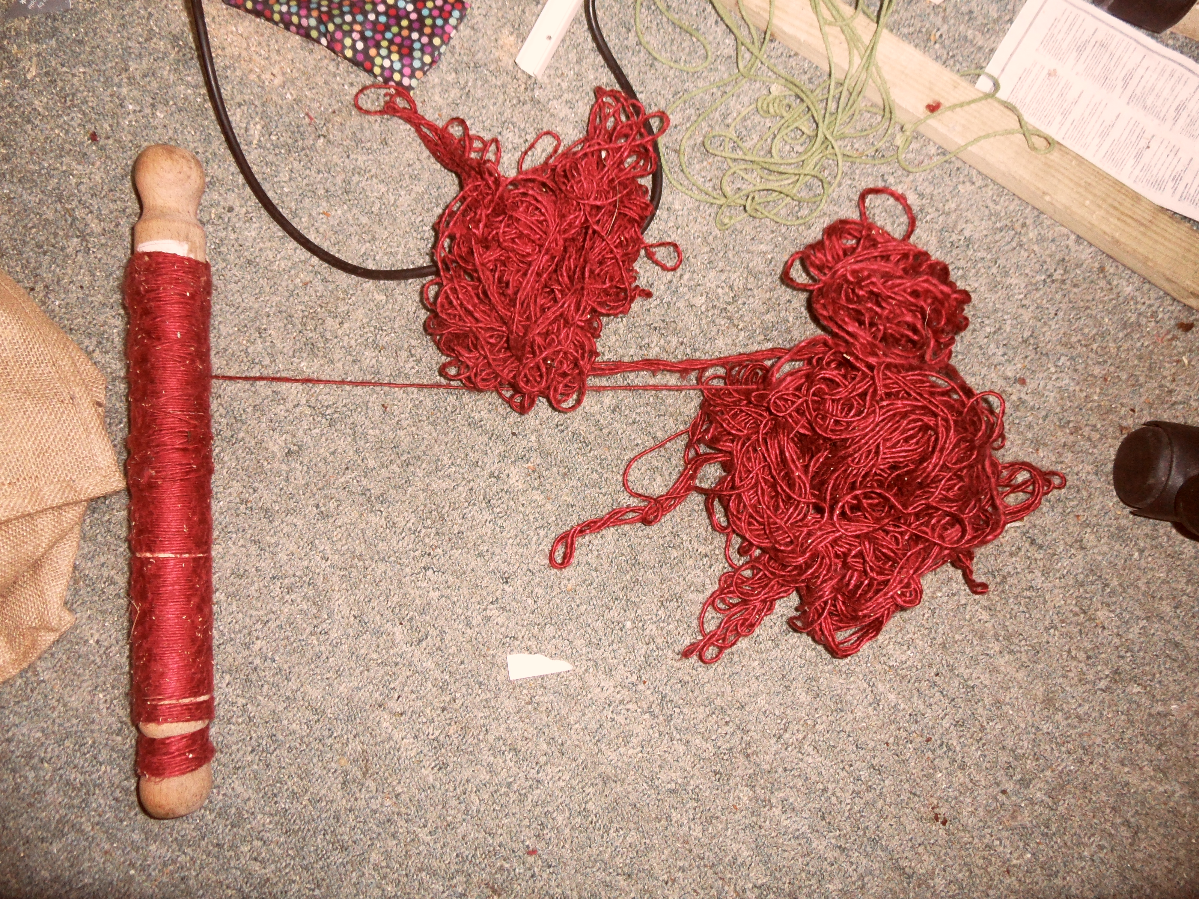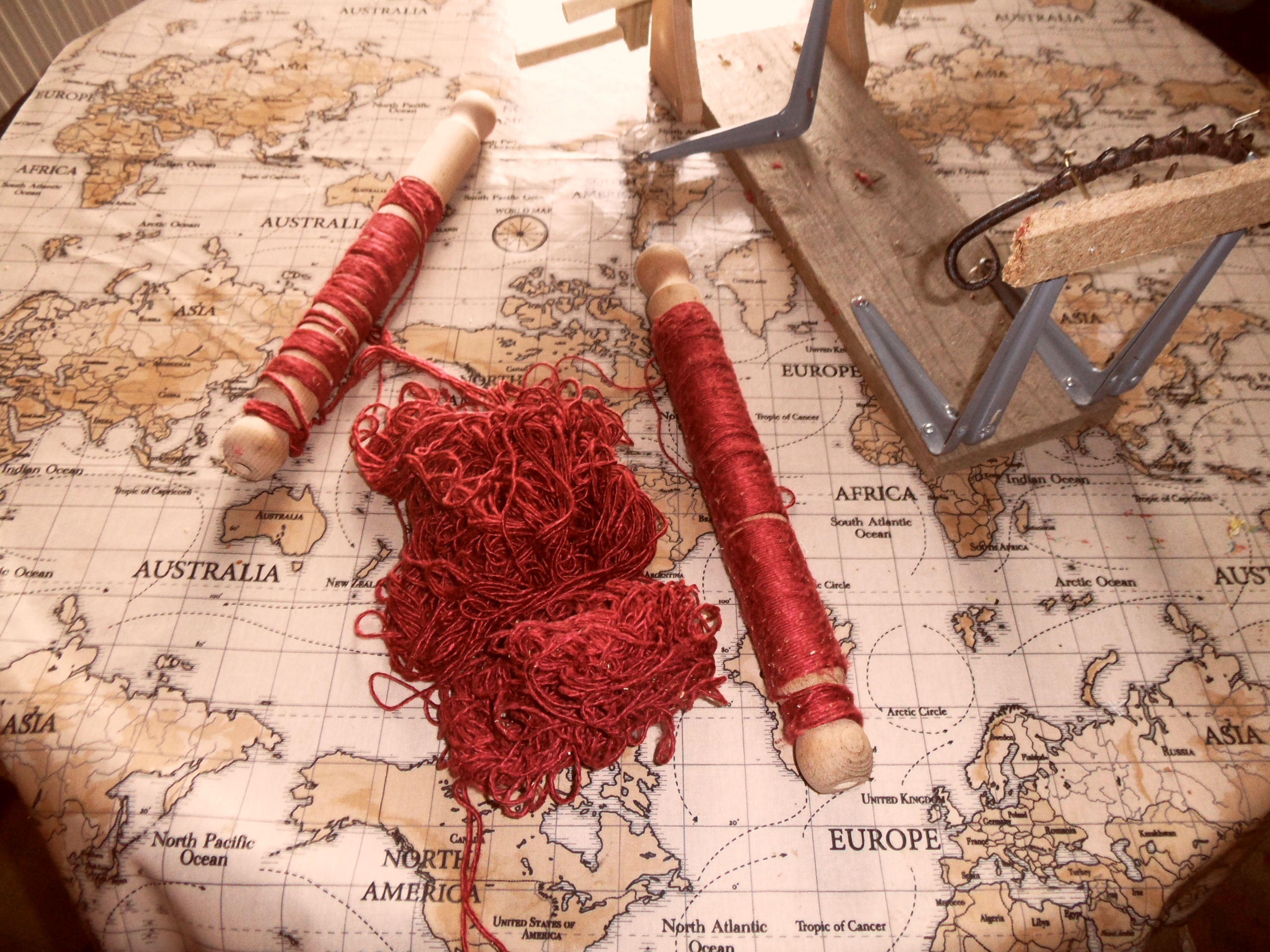 This decision had been rather forced on me, as I was not sure quite how much silk I had managed to disentangle – I reckoned the right-hand rolling pin below probably had enough for half a saddle, roughly reckoned at 25 yards,