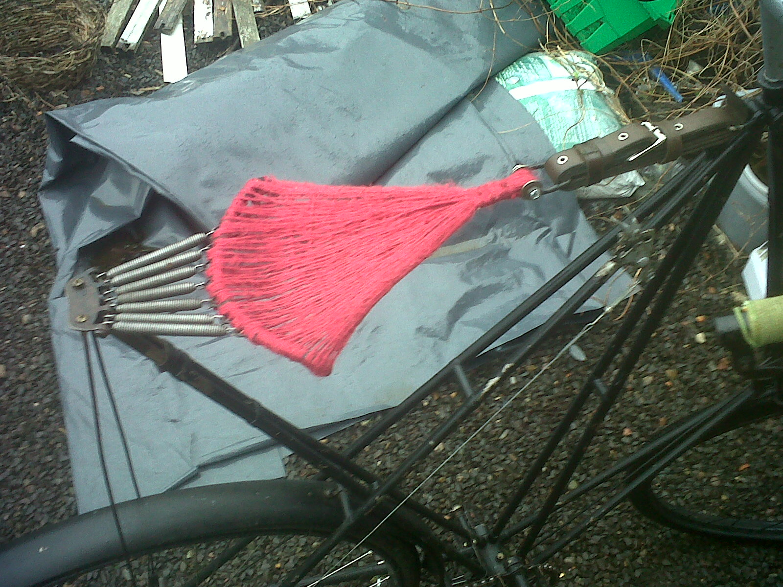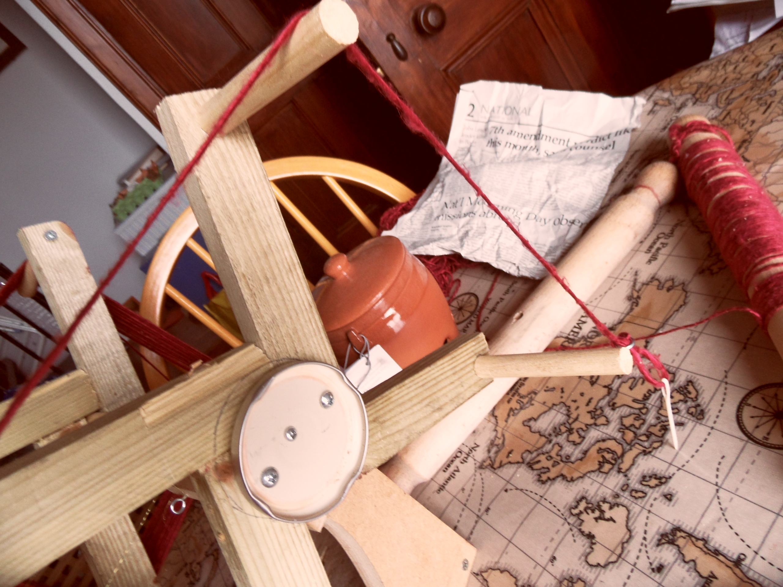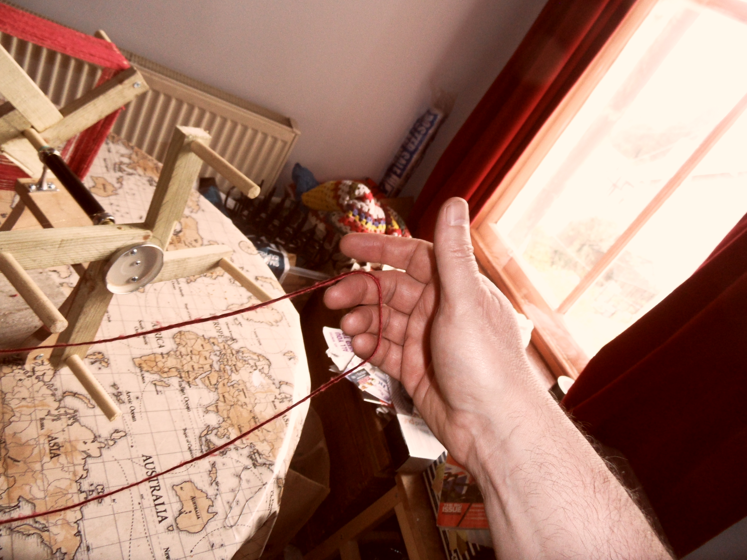It is almost exactly six months since a conversation on the Slow Bicycle Movement Facebook page with Susanna Ingram – Brompton owner, slow cyclist and celebrated mandolinista – reminded me both of the painting above* and the existence of yarn winders in general. We had been discussing Pedersen saddles and I had been explaining the particular difficulty which had prevented me for many months already from following through my plan to weave a new saddle for my Pedersen from a skein of crimson silk.