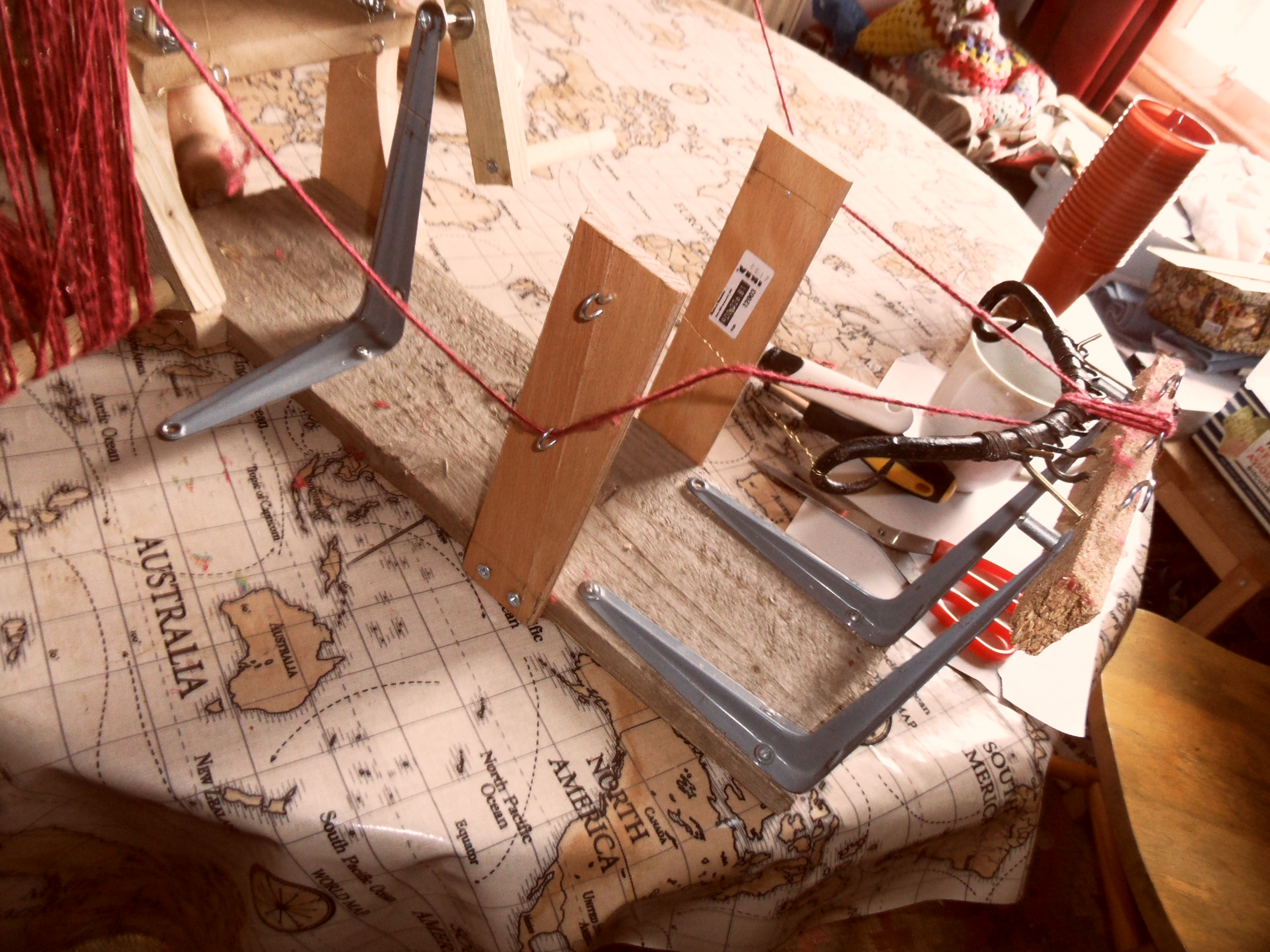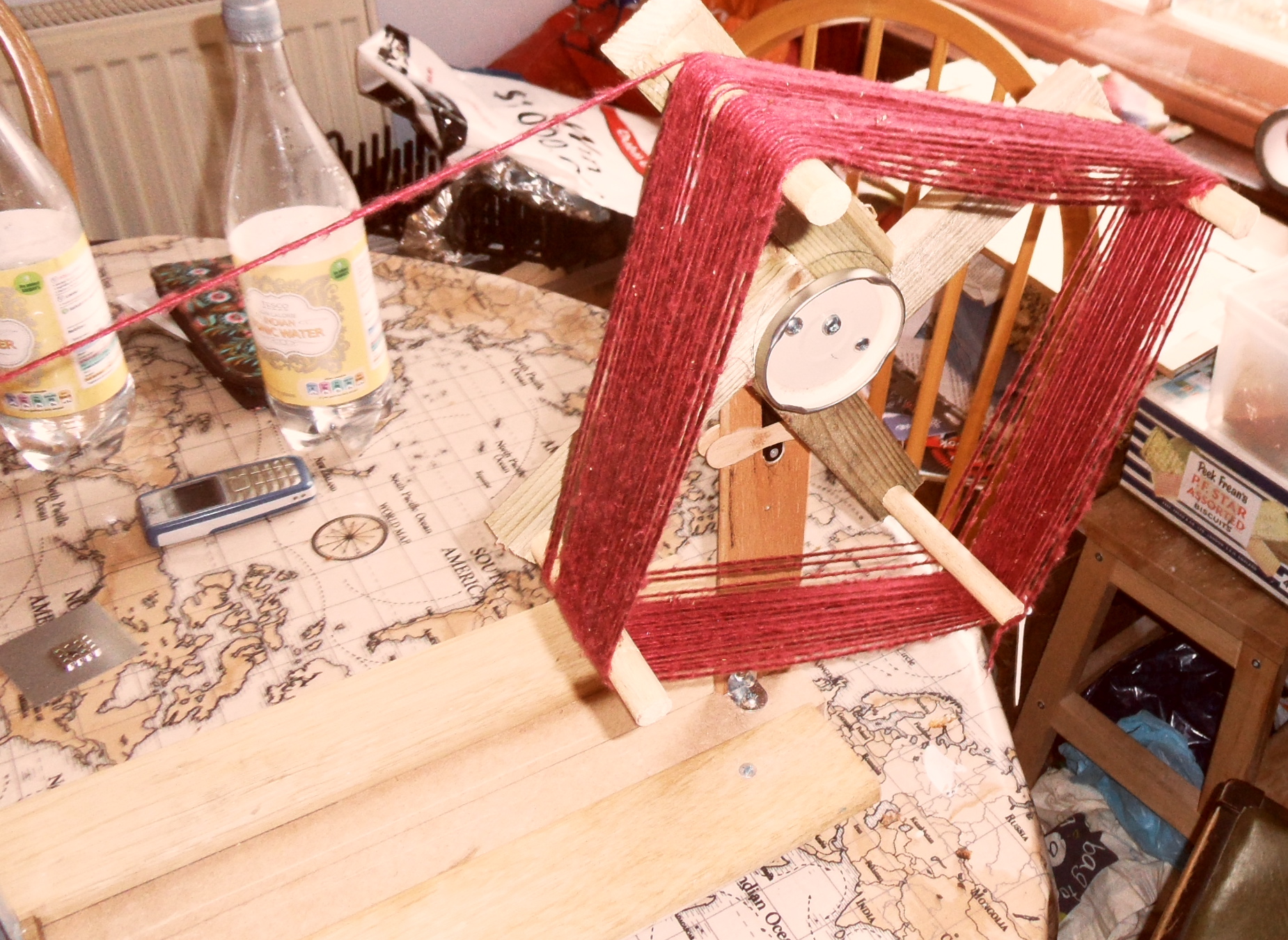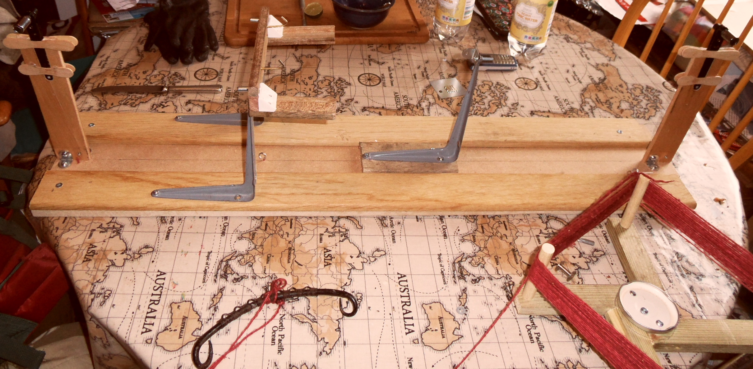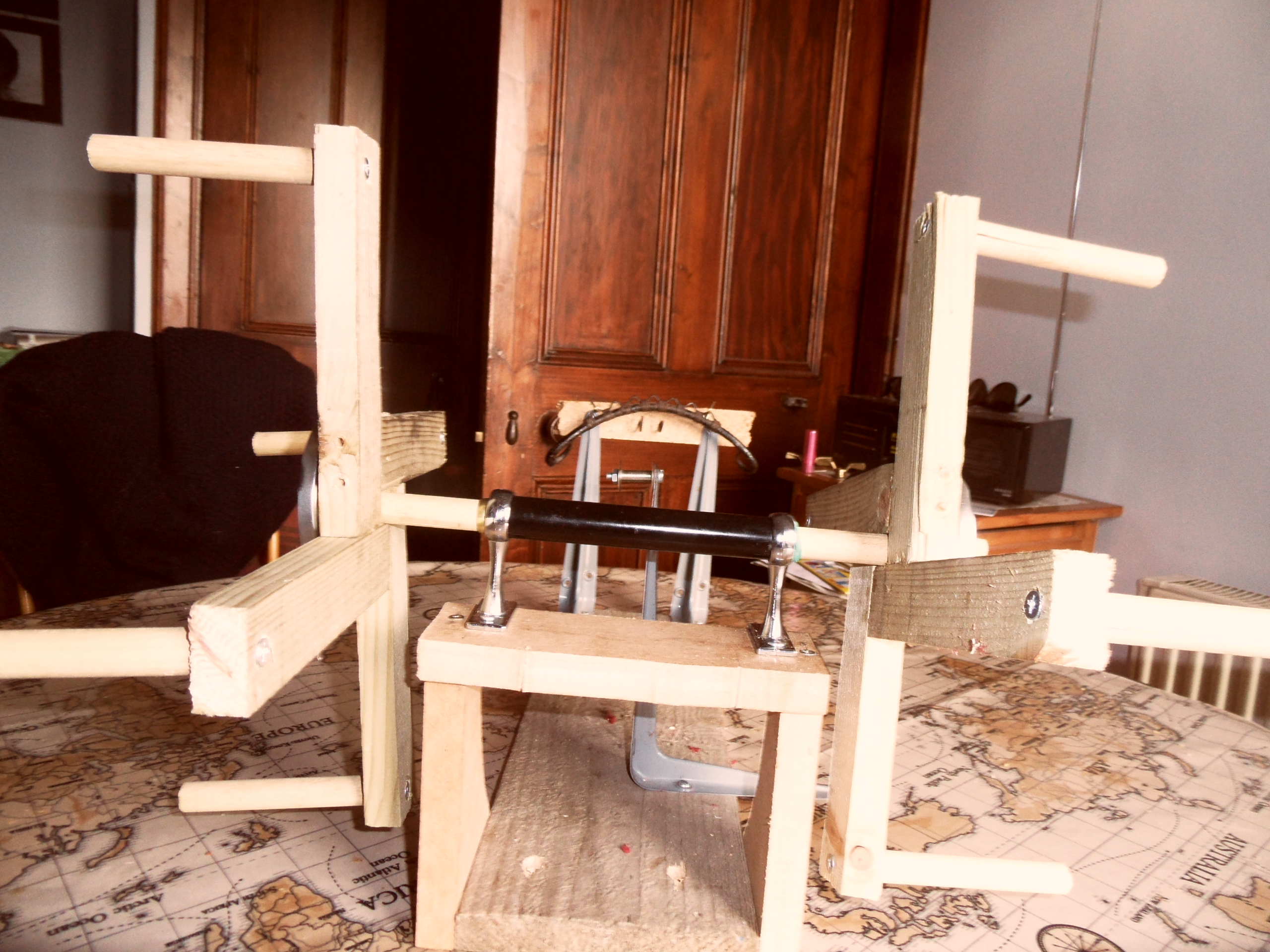 The seed that Susanna Ingram kindly planted in our conversation about yarn winders took some time to germinate, but with the onset of Spring and the stirring of the blood, I decided I really should get round to doing something. So I built a contraption.