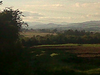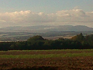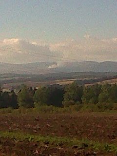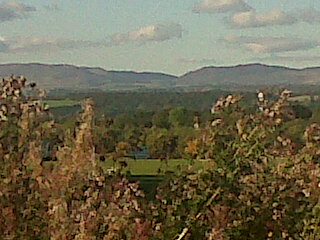 before opening up again to the West, with fine views of the hills and a distant moor burning, the sunlight striking a distant castle, and splendid autumn trees ahead
