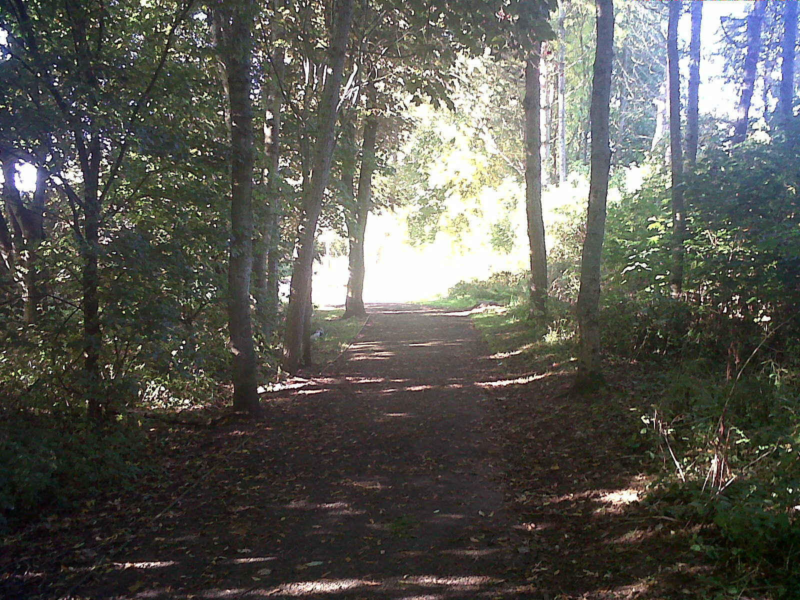 The path runs round Craigie Hill then picks up the line of the Scouring Burn as it runs into Perth alongside the Glasgow Road; a well made path flanked by trees runs through a residential area to the splendidly-named Western Edge, where it turns North and you gain some fine views of the distant hills from the vicinity of the improbably titled Noah’s Ark golf-driving range and go-kart track.