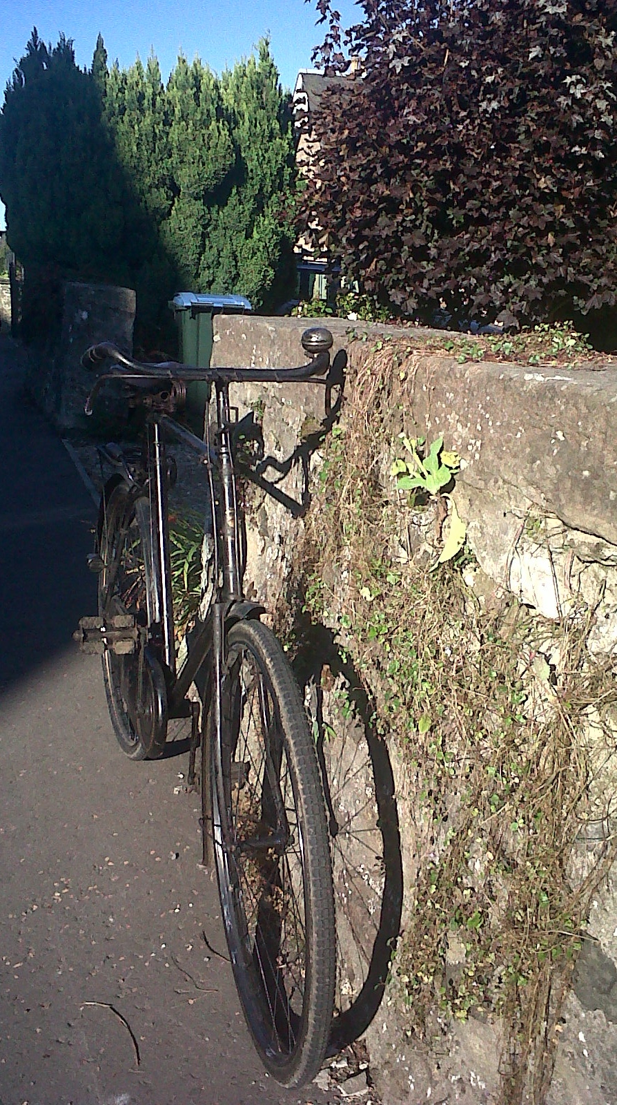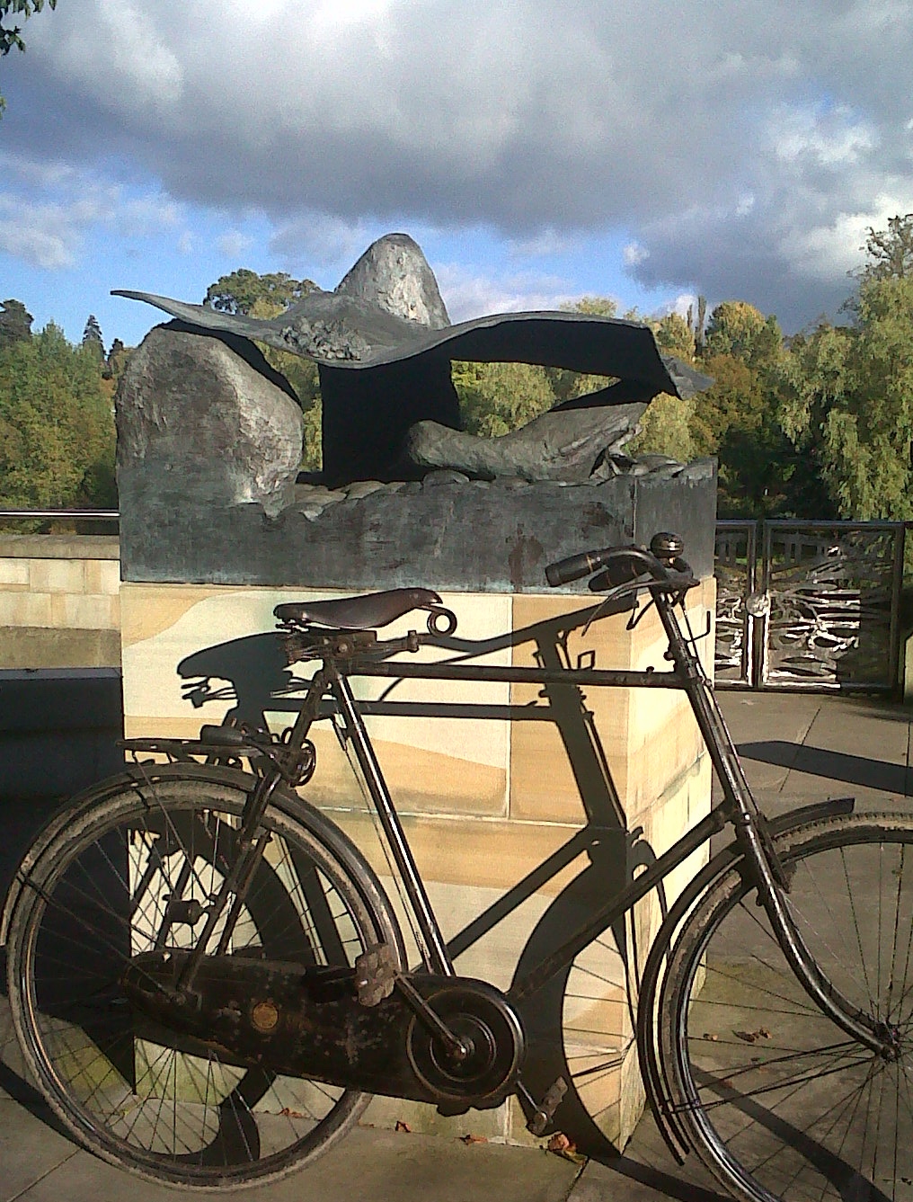 It being as fine an Autumn day as you could wish for, I set out on my hundred-year-old bicycle to take a turn about Perth, pausing only to admire the details that never fail to give me pleasure on my 1915 Golden Sunbeam, such as the parallel seat stays, the gold-leaf embellishment, the noble proportions of the 26″ frame: