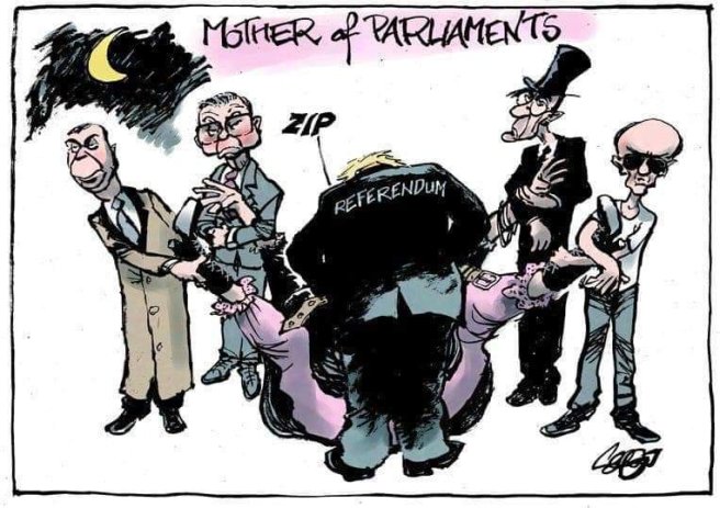 I suggest that, if Messrs Jenkin, Johnson, Gove, Mogg and the rest were actually telling the truth when they said (as they have repeatedly) that the British people voted for Brexit, then events would not have played out as they have to bring us to our present predicament. I therefore conclude that those ‘honourable gentlemen’ have not been telling the truth and that our present situation is quite the opposite from what they claim it to be: far from a recalcitrant Remainer elite group of MPs attempting to thwart the will of the people, the reality is that a small gang of unscrupulous and self-interested MPs have hijacked the government of our country and are determined to force through an outcome that has only ever been supported in any form by a minority of people and in this latest form – a disorderly Brexit with no arrangements in place – has few supporters if any.***