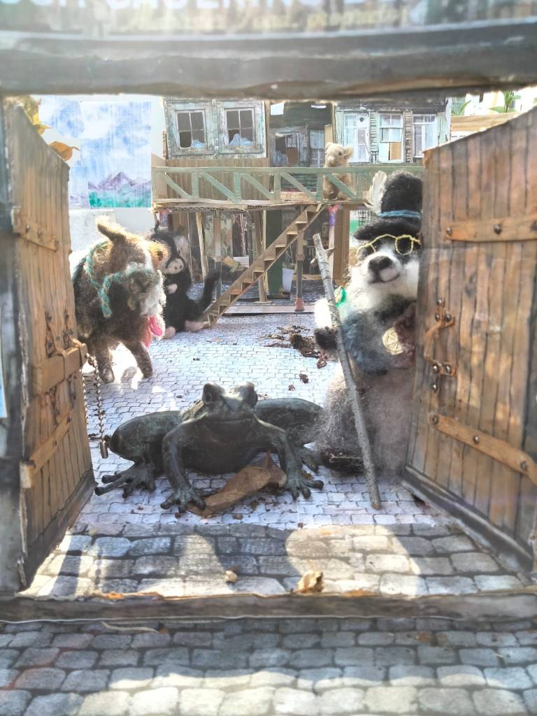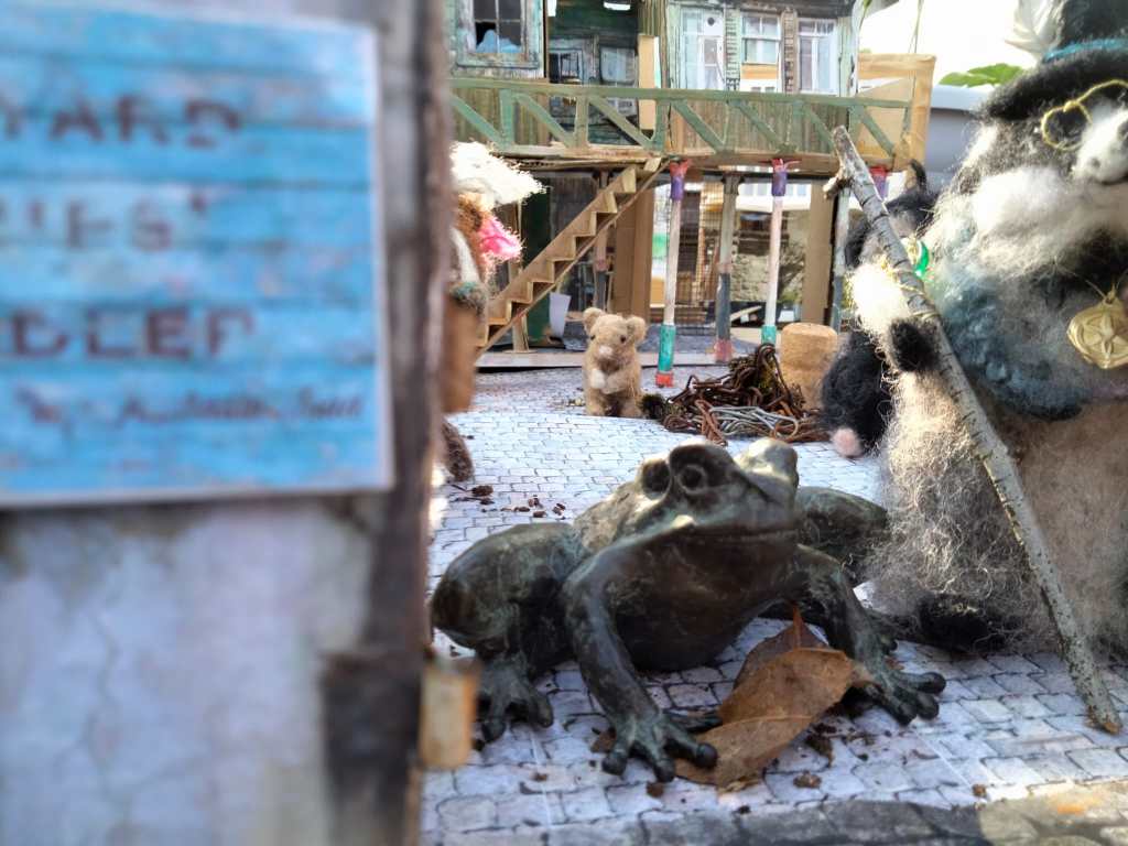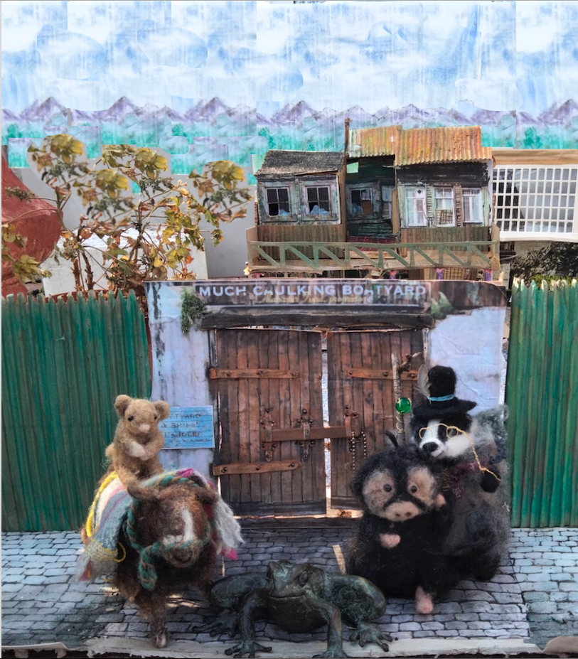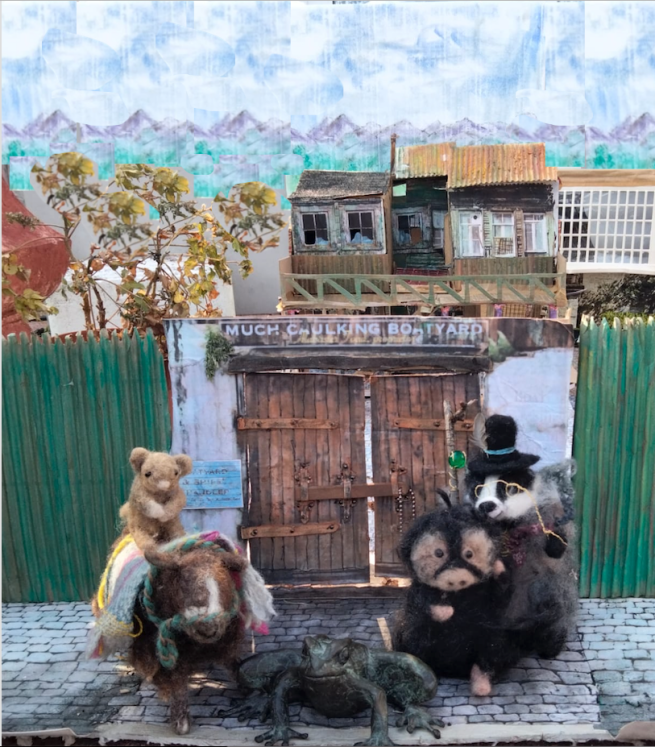 ‘I do like a bit of history,’ says Badger. They fling open the gates and go in to investigate the yard. It is rather dilapidated, with peeling paint and broken windows and old rusty chains and equipment lying about. Bronze Toad shakes his head sadly. ‘I’m afraid old Plaster Toad had no great head for business. He was Alabaster’s great-nephew and inherited the business when times were already hard. It’s been closed since his day, but I believe all the essentials are still here.’